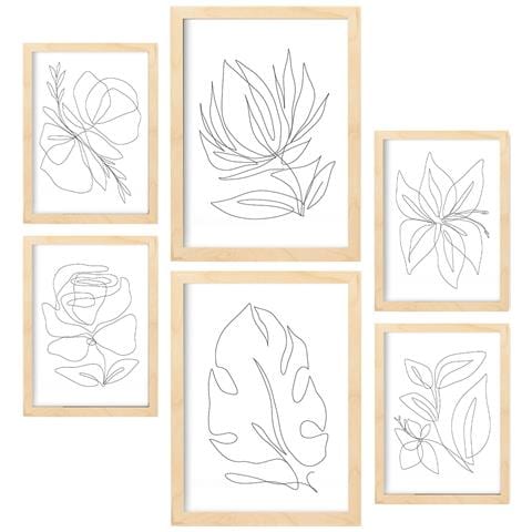 Set Di 6 Stampe Fairer Fiore In Flower Dipinti Decorativi Estetici Astratti Per Il Tuo Soggiorno Di Casa A3 & A4 Telaio In Legno Chiaro