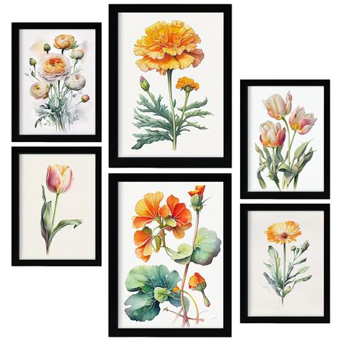 Set Di 6 Stampe Fiori Arancioni Stampe Naturalistiche E Botaniche A Colori Con Motivi Floreali Su Sfondi Bianchi Puri A3 & A4 Senza Cornice