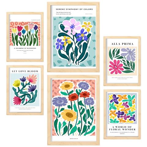Set Di 6 Stampe Foglio Di Poster Joy Galleria D'arte Astratta Dipinti Decorativi Per La Tua Casa Stampe Artistiche Da Parete A3 & A4 Telaio In Legno Chiaro