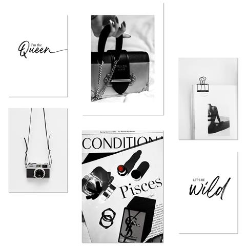 Set Di 6 Stampe Foto Di Moda Con Illustrazioni Di Design Per Decorare Le Pareti Della Tua Casa, Ufficio, Negozio E Attività Commerciale A3 & A4 Senza Cornice