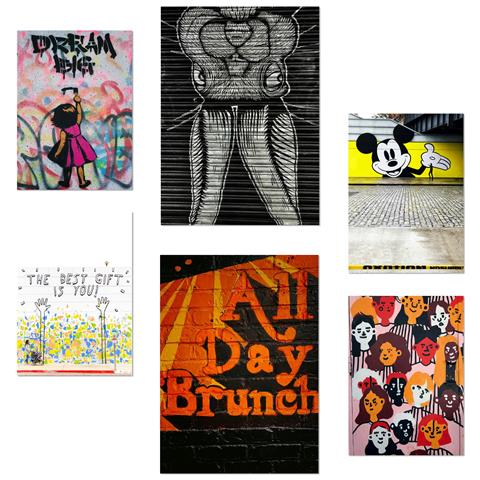 Set Di 6 Stampe Graffiti Street Art Pieni Di Illustrazioni Di Design Murale Colorate Per Le Pareti Delle Stanze Della Tua Casa A3 & A4 Senza Cornice