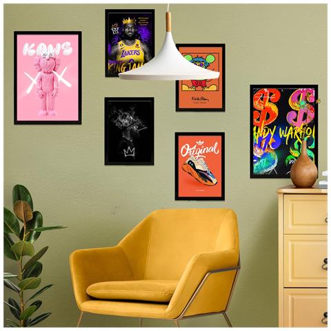 Set Di 6 Stampe Grafiti Pop Warhol Lakers Incorniciati Con Illustrazioni Di Design Per Le Pareti Della Casa, Stanza, Negozio, Pittura A3 & A4 Cornice Nera
