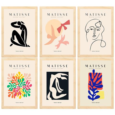 Set Di 6 Stampe Illustrazioni Artistiche Di Henri Matisse Collezione Di Sagome Di Dipinti Decorativi Cornici In Legno Chiaro A3 Telaio In Legno Chiaro