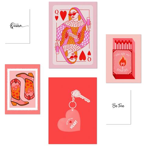 Set Di 6 Stampe Illustrazioni Di Arte Moderna In Illustrazioni Di Design Rosa Per Decorare Le Pareti Delle Stanze Della Tua Casa A3 & A4 Senza Cornice