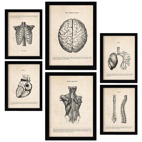 Set Di 6 Stampe Illustrazioni Mediche In Stile Vintage Della Parte Superiore Del Corpo, Anatomia, Parti Del Corpo, Ossa E Muscoli A3 & A4 Senza Cornice
