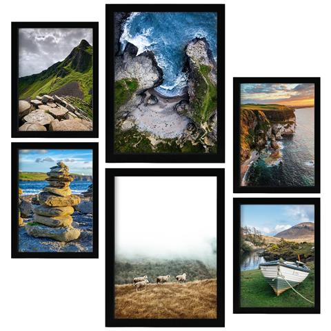 Set Di 6 Stampe Irlanda Nella Fotografia Dipinti Decorativi Estetici Per Il Tuo Soggiorno, Camera Da Letto, Casa A3 & A4 Cornice Nera