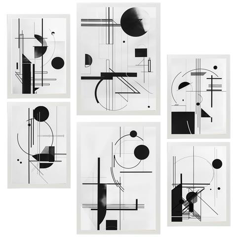 Set Di 6 Stampe Linee E Forme In Bianco E Nero Bauhaus, Opere D'arte Incorniciate Con Illustrazioni Di Design Per Decorare Le Pareti Della Tua Casa A3 & A4 Cornice Bianca