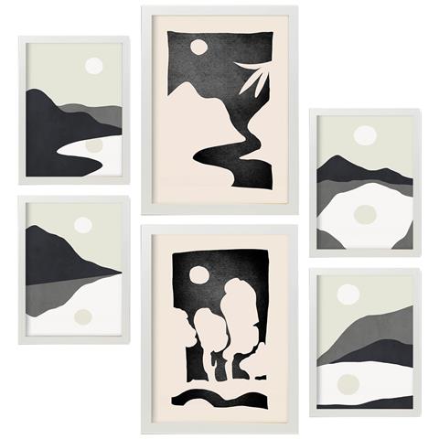Set Di 6 Stampe Luna Di Mezzanotte In Sfondi Astratti, Dipinti Decorativi Estetici Per Il Tuo Soggiorno, Camera Da Letto, Casa A3 & A4 Cornice Bianca