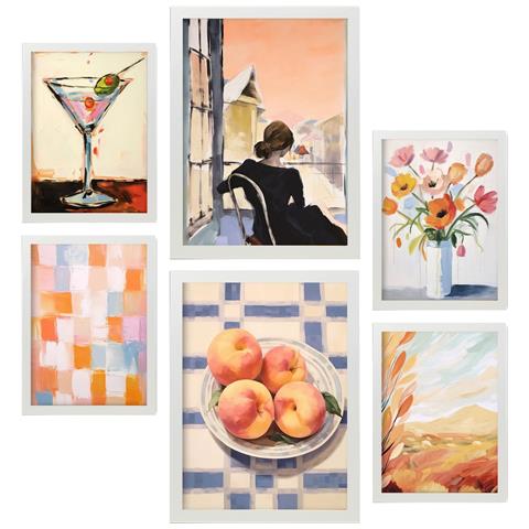 Set Di 6 Stampe Mix Di Pesche In Set, Dipinti Decorativi Estetici Per Il Tuo Soggiorno, Camera Da Letto, Casa A3 & A4 Cornice Bianca