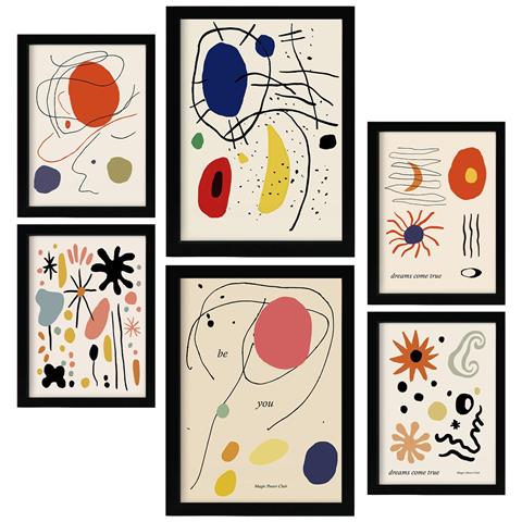 Set Di 6 Stampe Picasso Astratto Marisse Inso Mix In Set Dipinti Decorativi Estetici Per La Tua Casa A3 & A4 Cornice Nera