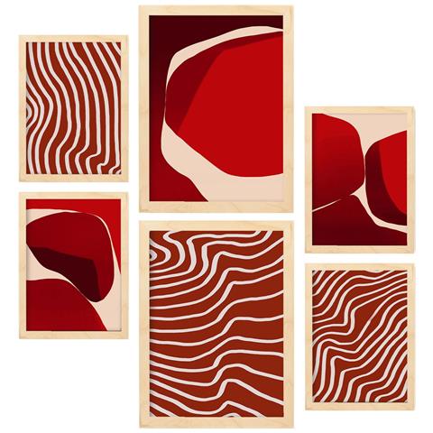 Set Di 6 Stampe Pietre Rosse In Forme Astratte, Dipinti Decorativi Estetici Per Il Tuo Soggiorno, Camera Da Letto, Casa A3 & A4 Telaio In Legno Chiaro