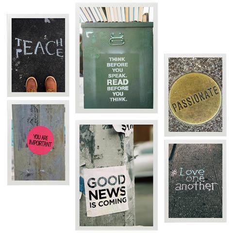 Set Di 6 Stampe Pittura Decorativa, Frasi Di Strada Ispiratrici, Arte Urbana Incorniciata Con Illustrazioni Di Design Per Le Pareti A3 & A4 Cornice Bianca