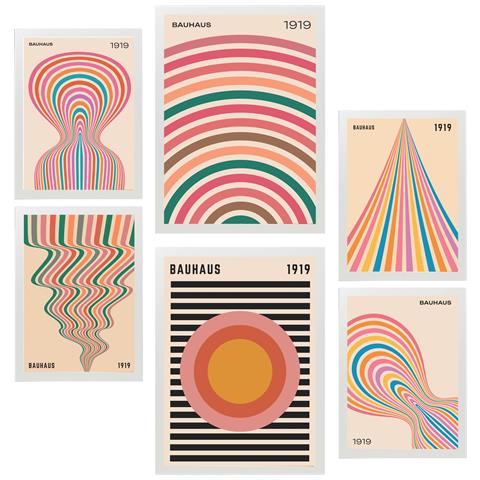 Set Di 6 Stampe Pittura Decorativa Geometrica Bauhaus Colori Pastello Incorniciata Con Illustrazioni Di Design Per Le Pareti A3 & A4 Cornice Bianca