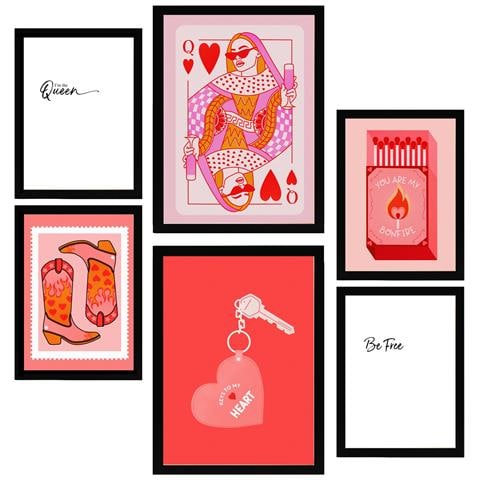 Set Di 6 Stampe Pittura Decorativa, Illustrazioni Di Arte Moderna In Rosa Incorniciate Con Illustrazioni Di Design Per Le Pareti A3 & A4 Cornice Nera