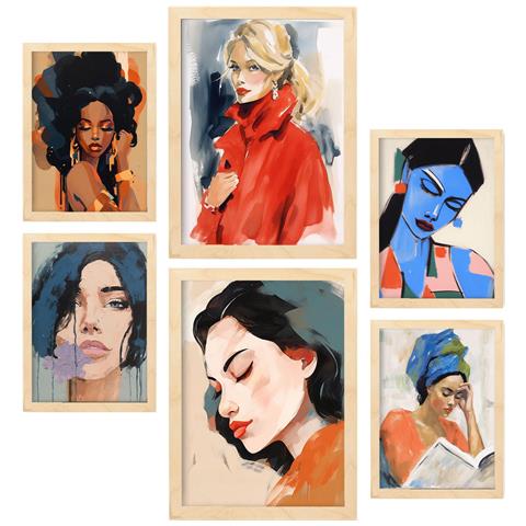 Set Di 6 Stampe Poster ""ambizioso Nelle Donne"", Dipinti Decorativi Estetici Per Il Tuo Soggiorno, Camera Da Letto, Casa A3 & A4 Telaio In Legno Chiaro