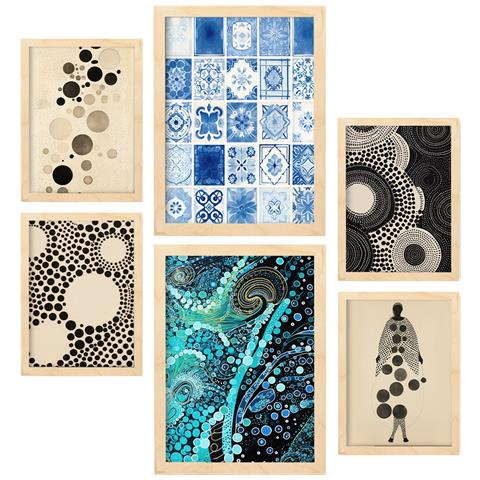 Set Di 6 Stampe Punti Abbaglianti In Versatili Dipinti Decorativi Estetici Per Il Tuo Soggiorno A Casa A3 & A4 Telaio In Legno Chiaro