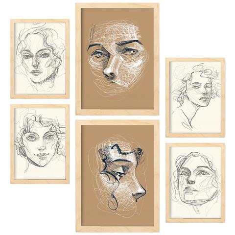 Set Di 6 Stampe Ragazzo Seducente In Dipinti Decorativi Estetici Astratti Femminili Per La Tua Casa A3 & A4 Telaio In Legno Chiaro