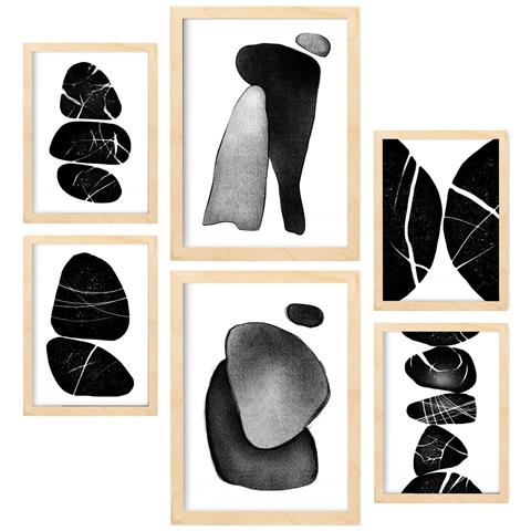 Set Di 6 Stampe Rocce Palladiane In Dipinti Decorativi Astratti Estetici Per Il Tuo Soggiorno A3 & A4 Telaio In Legno Chiaro