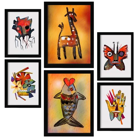 Set Di 6 Stampe Si Distingue 3 In Animali Astratti Dipinti Decorativi Estetici Per Il Tuo Soggiorno, Camera Da Letto, Casa A3 & A4 Cornice Nera