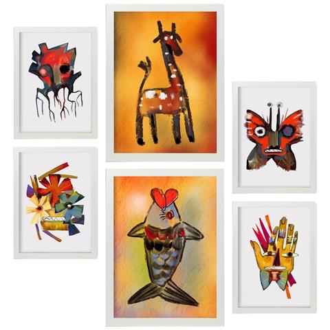 Set Di 6 Stampe Si Distingue 3 In Animali Astratti Dipinti Decorativi Estetici Per Il Tuo Soggiorno, Camera Da Letto, Casa A3 & A4 Cornice Bianca