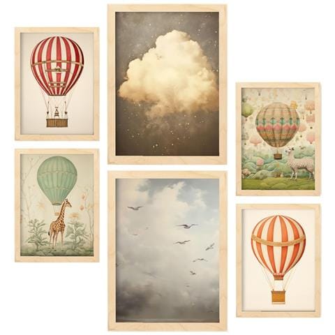 Set Di 6 Stampe Skyballons All'asilo: Dipinti Decorativi Estetici Per Il Tuo Soggiorno, Camera Da Letto E Casa A3 & A4 Telaio In Legno Chiaro