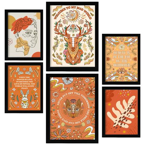 Set Di 6 Stampe Stampa Di Orange In Brilliant Groovy Style Collection Cornici Decorative Per La Tua Casa Stampa Artistica Da Parete A3 & A4 Cornice Nera