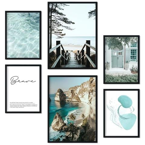 Set Di 6 Stampe Stampe Artistiche Da Parete Con Effetto Acqua Turchese Per Camera Da Letto O Soggiorno A3 & A4 Senza Cornice