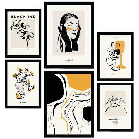 Set Di 6 Stampe Stampe Artistiche E Astratte Sofisticate Con Inchiostro Nero Per L'interior Design A3 & A4 Senza Cornice