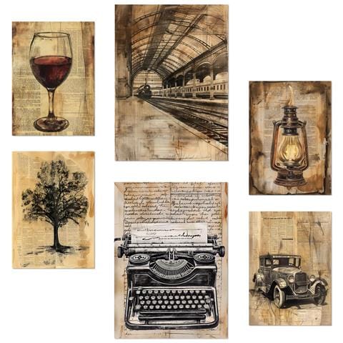 Set Di 6 Stampe Stile Di Vita Dello Scrittore Vintage Con Illustrazioni Di Design Per Le Pareti Delle Tue Stanze Negozio E Attività A3 & A4 Senza Cornice