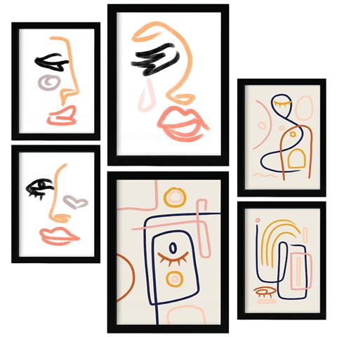 Set Di 6 Stampe Stillness Hires In Dipinti Decorativi Estetici Astratti Femminili Per Il Tuo Soggiorno Di Casa A3 & A4 Cornice Nera