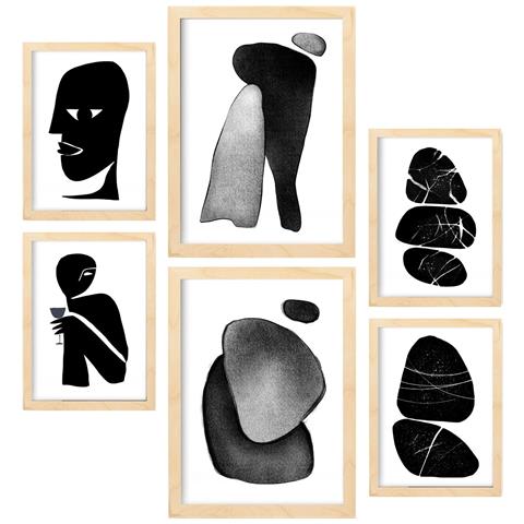 Set Di 6 Stampe Teste Senza Dati In Amanti Dipinti Decorativi Estetici Astratti Per Il Tuo Soggiorno Di Casa A3 & A4 Telaio In Legno Chiaro