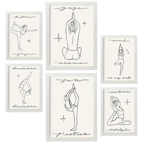 Set Di 6 Stampe Yoga Muses 2 In Yoga Muse Dipinti Decorativi Estetici Ispirati Per Il Tuo Soggiorno, Camera Da Letto, Casa A3 & A4 Cornice Bianca