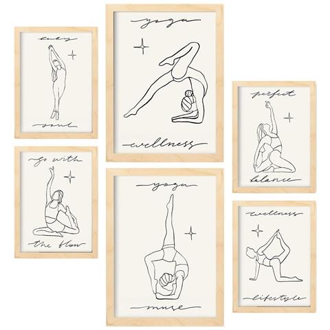 Set Di 6 Stampe Yoga Muses 3 In Yoga Muse Dipinti Decorativi Estetici Ispirati Per Il Tuo Soggiorno A Casa A3 & A4 Telaio In Legno Chiaro
