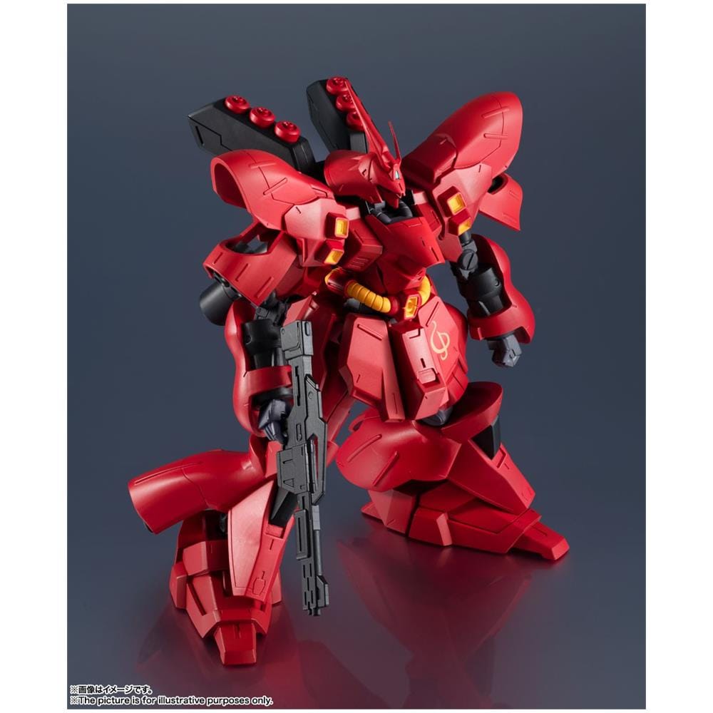 Bandai mobile suit gundam universe msn-04 sazabimsn-04 sazabi entra nella line-up bandai gundam universe, azione completa alto 15cm. viene fornito con base espositiva, mani intercambiabili, beam rifle e beam tomahawk.