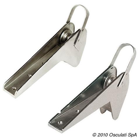 Musone autobloccante. Per ancore tipo Bruce / Trefoil®, microfuso in acciaio inox AISI 316 lucidato a specchio. Puleggia inox indistruttibile, completo di cavallotto di sicurezza.
