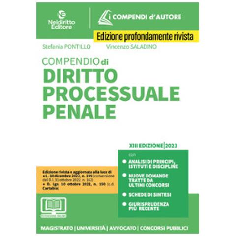 Le profonde, incessanti e tumultuose trasformazioni che stanno attraversando la disciplina del processo penale hanno imposto la messa a punto della xiii edizione del compendio di procedura penale, pubblicata a pochi mesi dall'ultima, già profondamente rivista in conseguenza delle importanti novità introdotte dal d.lgs. 10 ottobre 2022 n. 150 (c.d. Riforma cartabia). In questa edizione, oltre a ...