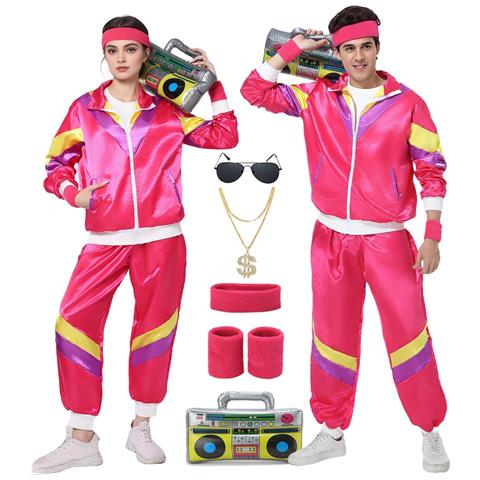 Rivivi la magia degli anni '80 con questo incredibile costume retro! Trasformati nella star della festa con la nostra tuta da ginnastica rosa fluo, taglia xxl. Perfetto per halloween, party a tema, carnevale o serate disco indimenticabili. Il set completo include tutto ciò che ti serve per un look autentico e irresistibile: tuta da ginnastica, radio gonfiabile, occhiali da sole iconici, collana...
