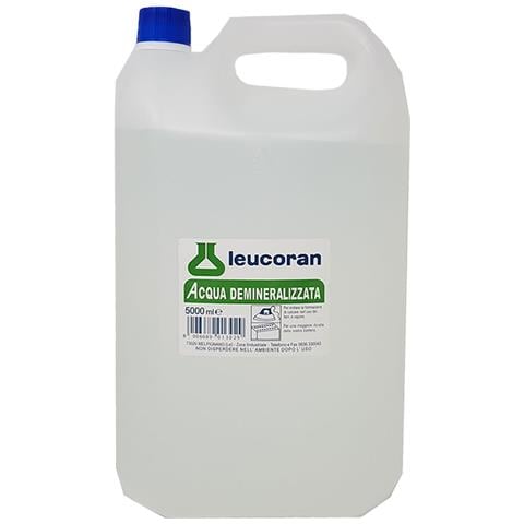 Prodotto deionizzato (senza componente salina). Impiegata in ferri da stiro (evita il formarsi delle incrostazioni), nelle batterie, negli acquari e nei casi in cui sia consigliato l'uso di acque prive di durezza. Non indicata per uso alimentare.. Lt. 5. inteso per : 4 pz.