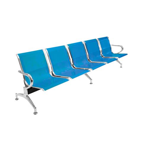 Panca per sala d’attesa, ufficio, studio, scuola a cinque posti in acciaio colore blu estremamente resistente e comoda. Seduta in acciaio traforato verniciato.profili in acciaio finitura cromo.braccioli in acciaio lucidato finitura cromo.barra di sostegno con sezione e spessore maggiorato verniciata nera.il prodotto non si intende per uso pubblico.