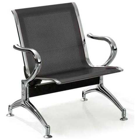 Panca per sala d’attesa, ufficio, studio, scuola a un posto in acciaio colore nero estremamente resistente e comoda. Seduta in acciaio traforato verniciato.profili in acciaio finitura cromo.braccioli in acciaio lucidato finitura cromo.barra di sostegno con sezione e spessore maggiorato verniciata nera.il prodotto non si intende per uso pubblico.