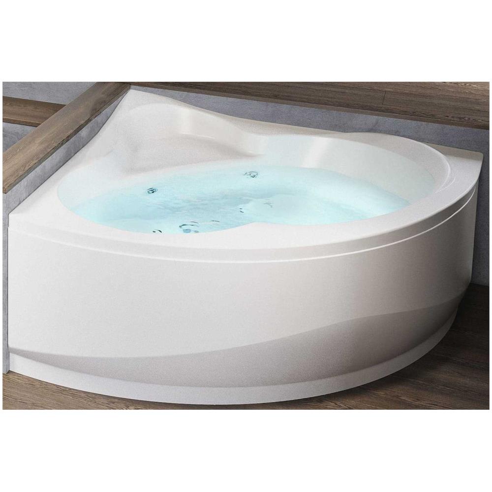 Una Vasca Da Bagno Versione Hydro Plus Misura 135x135 H55 Cm Idro Whirlpool 6 Airpool 12 Jets Disinfezione Accensione Digitale Forma Esterna Curva Simmetrica Interna Ovale Installazione Angolo Pannello Erogatore Materiale Acrilico Colore Bianco