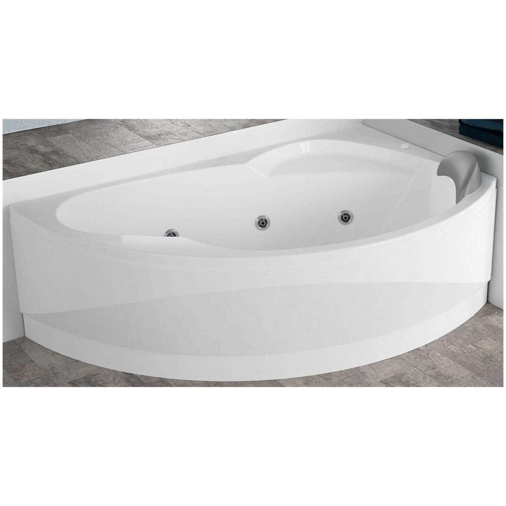 Vogue Vasca Da Bagno Versione Hydro Con Disinfezione Misura 165x85 H55 Cm Idro Whirlpool 7 Jets Forma Esterna Semicircolare Asimmetrica Interna Ovale Installazione Angolare Destra Pannello Colonna Cuscino Materiale Acrilico Finitura Bianco