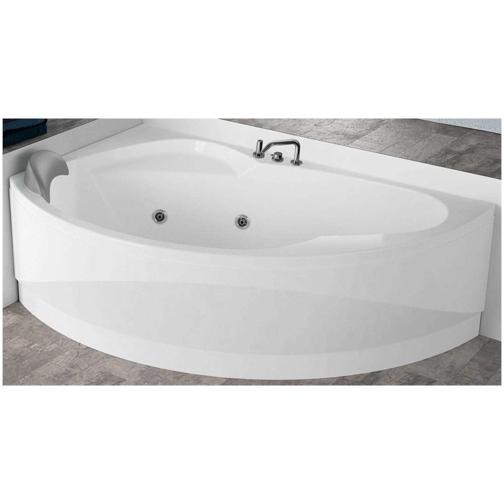 Vogue Vasca Da Bagno Versione Hydro Misura 150x85 H55 Cm Idro Whirlpool 5 Jets Forma Esterna Tonda Curva Semicircolare Asimmetrica Interna Ovale Installazione Angolo Sinistra Pannello Colonna Rubinetteria Cuscino Materiale Acrilico Colore Bianco
