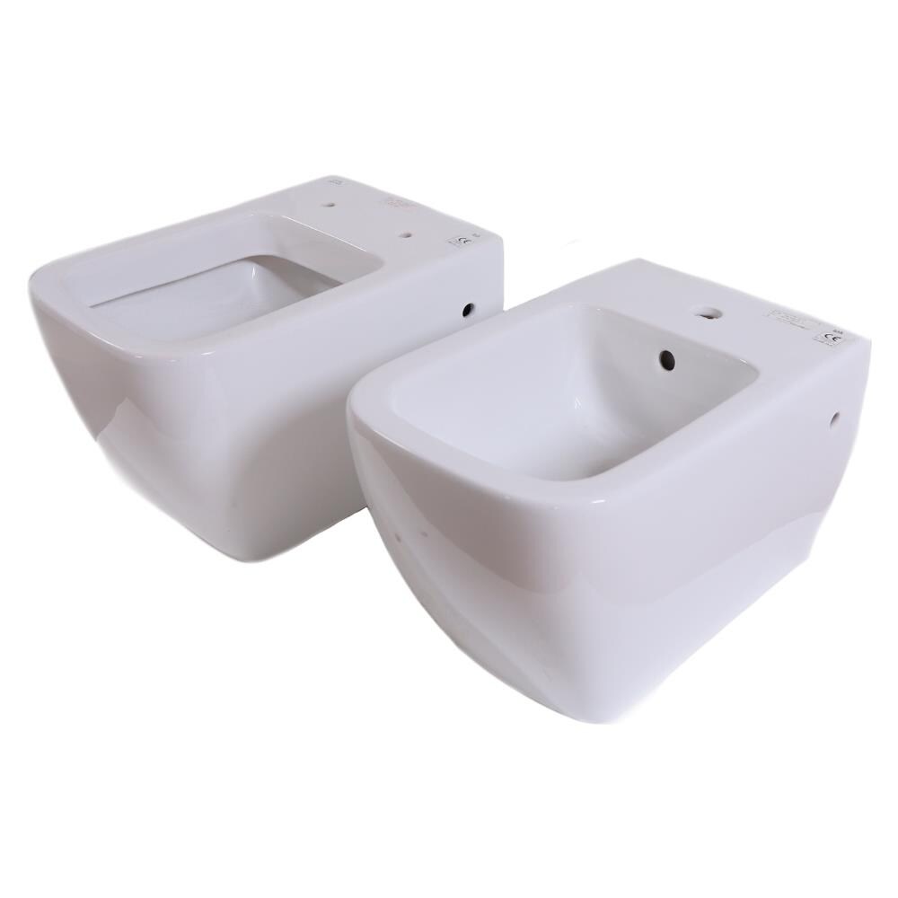Coppia Sanitari Sospesi In Ceramica Vaso Wc + Bidet Rak Metropolitan