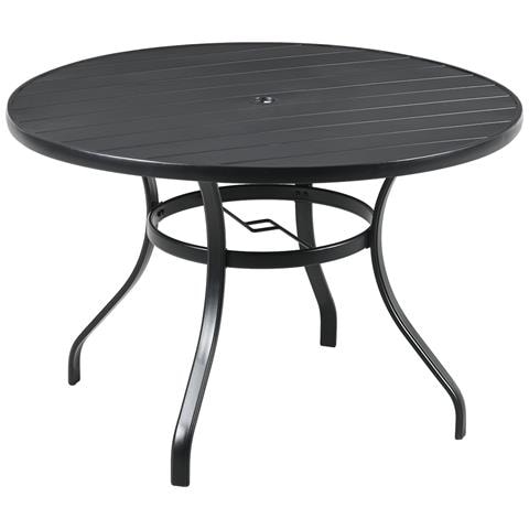 Tavolo Da Giardino Rotondo Per 4 Persone Con Foro Per Ombrellone E Doghe In Metallo, Ø115x72cm, Nero