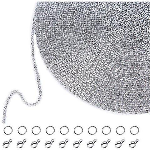 33 Piedi In Acciaio Inox Fai Da Te Di Collegamento Collane A Catena Con 20 Catenacci E 30 Anelli Di Salto Per Fare Gioielli (15 Mm)