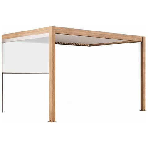 Pergola Bioclimatica Addossata 3x4m E 1 Tenda In Legno Bianca