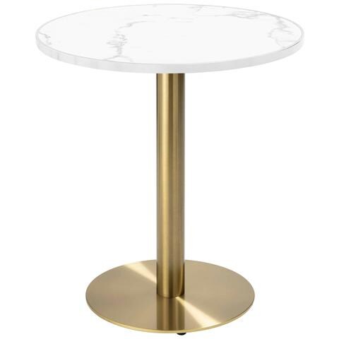 Tavolo Da Pranzo Rotondo 60 Cm Piano Marmo Bianco/argento E Gamba Oro