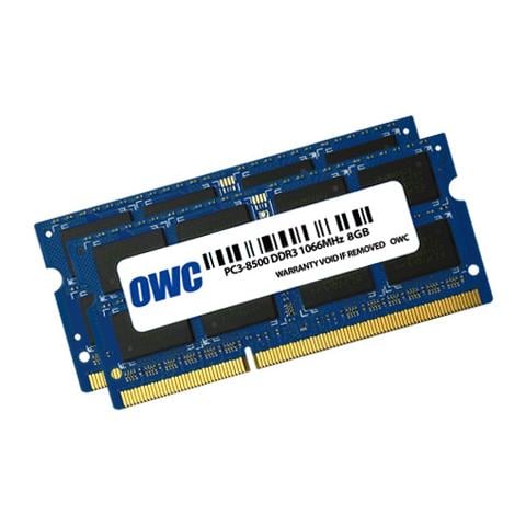 OWC 2x 8GB, PC8500, DDR3, 1066MHz. RAM installata: 16 GB, Tipo di RAM: DDR3, Velocità memoria: 1066 MHz. Colore del prodotto: Blu, Certificazione: RoHS