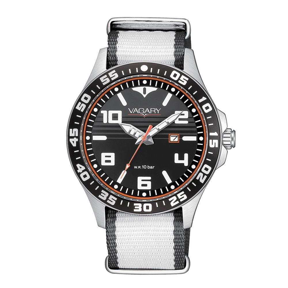 Movimento al quarzo Citizen, cal. 6010. Caratteristiche cassa in acciaio. Cinturino in nylon. Fondo serrato a vite. Wr 10 bar. Dimensioni diametro cassa 36 mm.